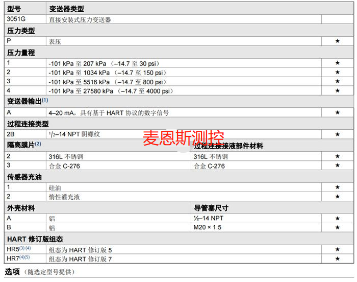 型號(hào) 變送器類型